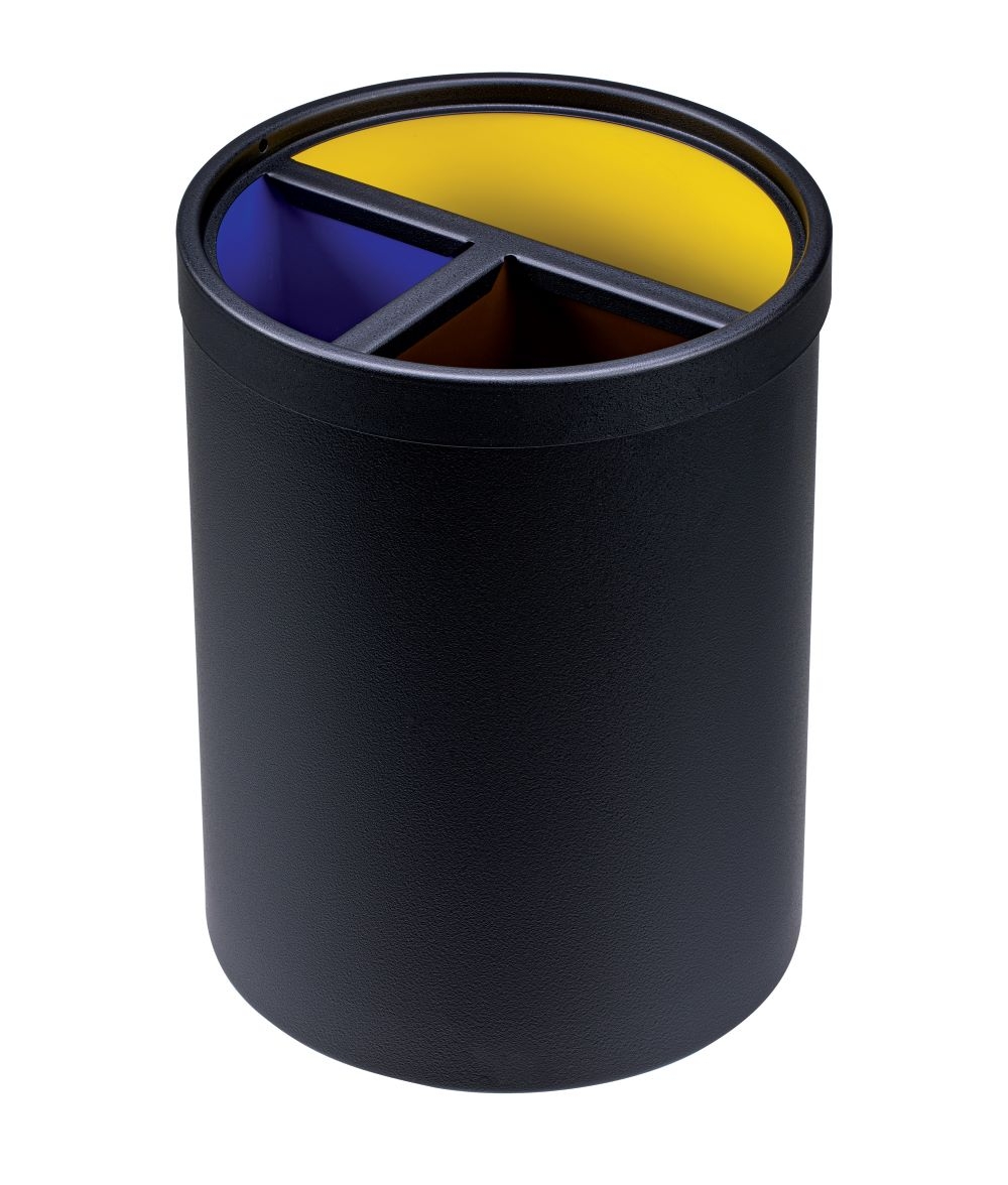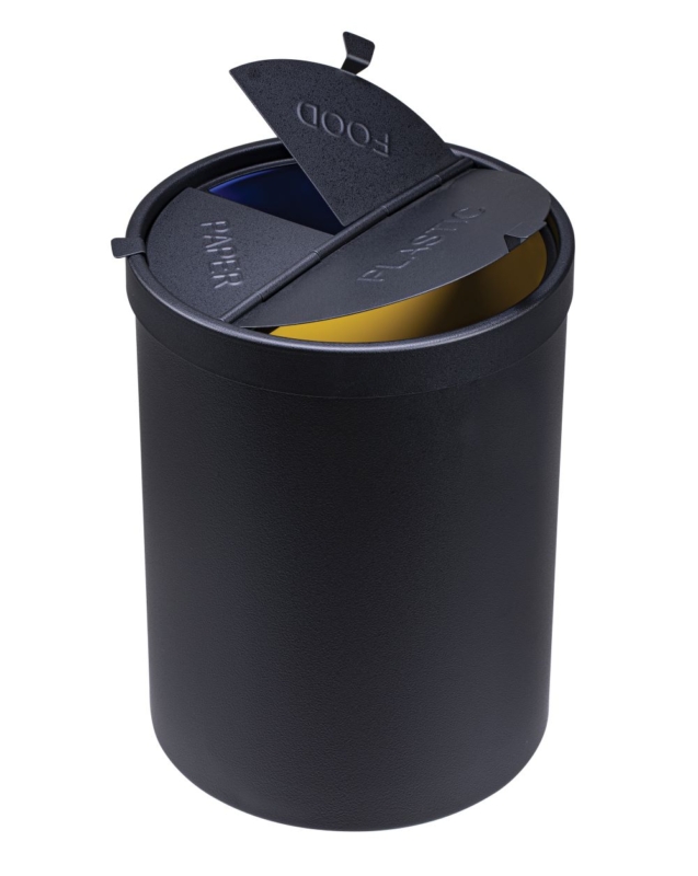Black 3-bin sorting bin (6L + 2x3L).Optional lid to close compartments