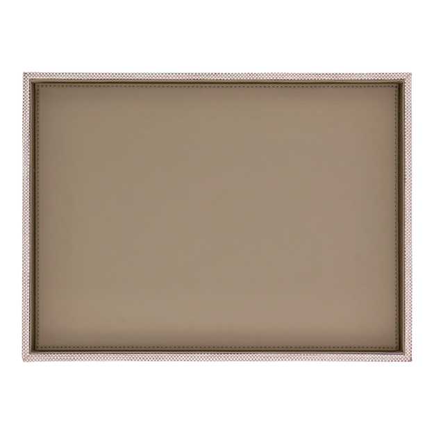 Adesign Tribe reception tray for hot drinks and kettle: elegant and functional with olive synthetic leather interior and grey-beige woven polypropylene exterior, water-resistant and perfect for refined service.