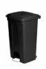 Container 90L black. Pedal Container with a stability ring and displacement wheels. Automatic closure of the lid and selective sorting stickers included.