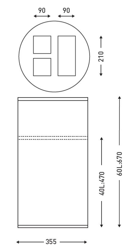 DimensionsProduct height (mm) : 670Product width (mm) : 355Product depth (mm) : 355Diameter (mm) : 355
