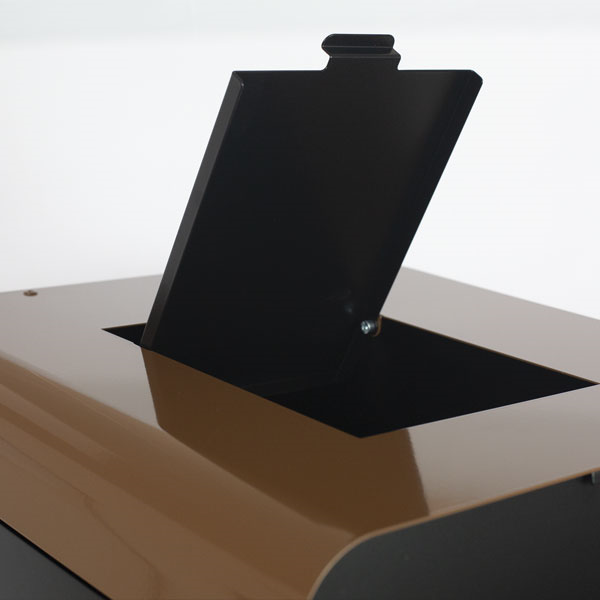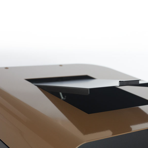 Brown 80-litre recycling bins with wide front opening for easy bag removal. Available in several colours to create sorting areas.