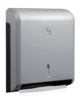 Cleanline hand towel dispenser, metal grey. Capacity for 400 to 600 sheets (max. format 245mm). Made from 100% recycled plastic.