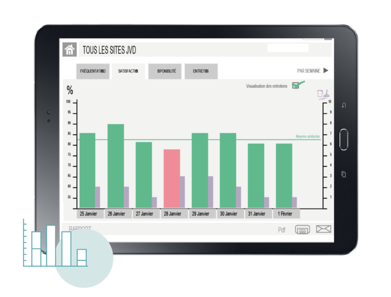 The 1st connected disinfection station for guaranteed availability of hydroalcoholic gel. Almost real-time monitoring of gel levels and alerts in the event of imminent breakage. No electrical connection and vandal-proof.