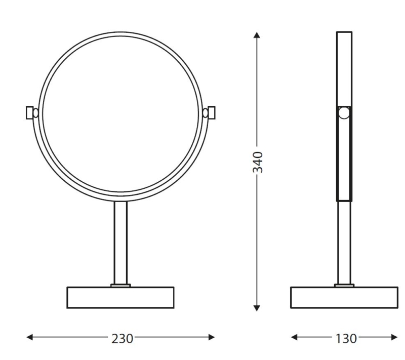 Mirror FIESTA copper on double sided foot (normal and vision x3) with tubular chromed brass arm.