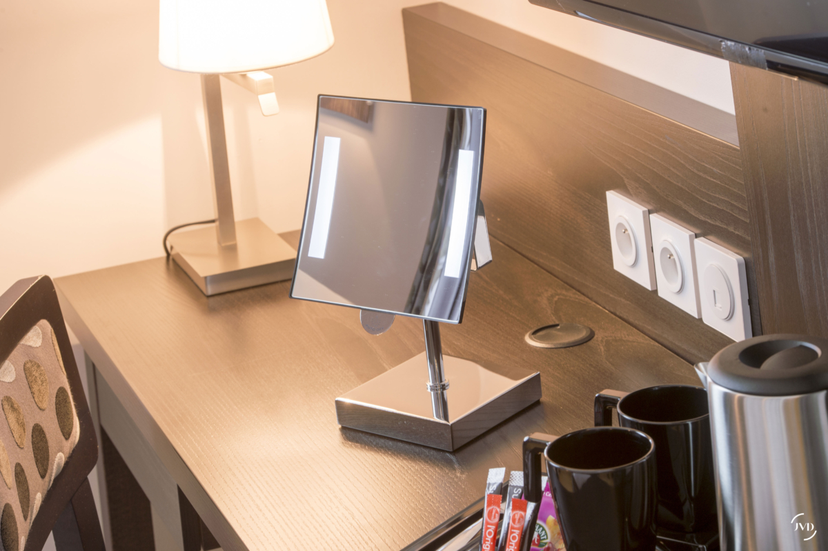 Luminous GALAXY mirror on foot with a magnifying vision x3. Works with 1 supplied 3.6v lithium battery and allows installation without electrical connection. The mirror is equipped with a time delay of 3 min. Switching on by sensory system.