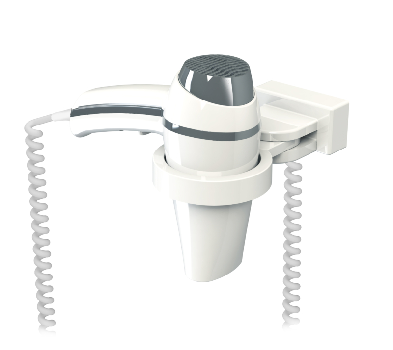 Clipper Kit white hair dryer 1400 W + Universal support, pre-wired for quick installation, 180° swiveling. Made in France.