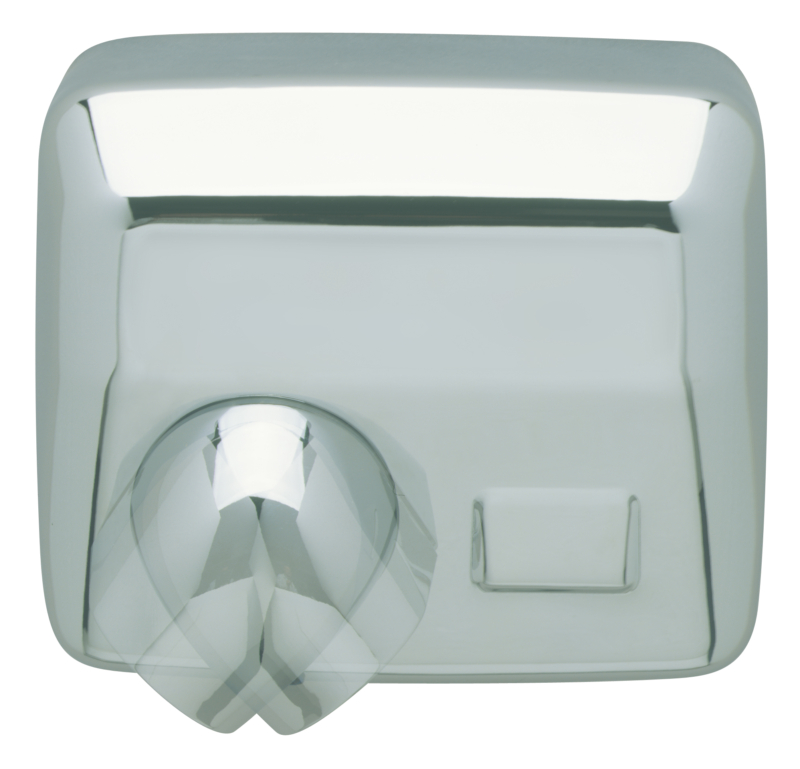 Ouragan automatic hot-air chrome-plated hand dryer with a 360° swivel nozzle and a vandal resistant steel cover.