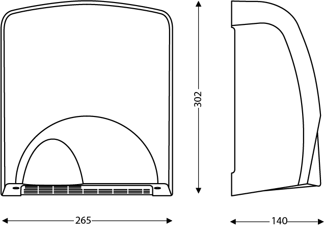 Dimensions | Product height (mm) : 302Product width (mm) : 265Product depth (mm) : 140 |