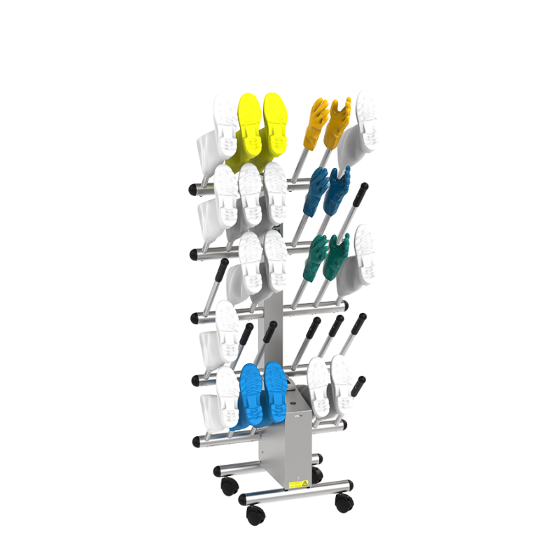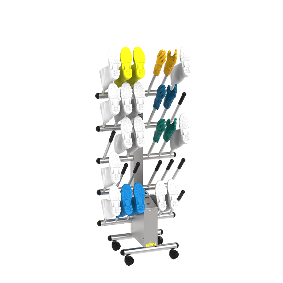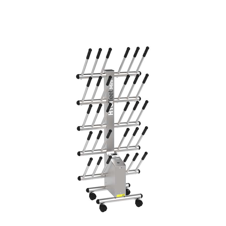 Renowned for its efficiency, HYGIfeet maintains all types of footwear (high boots, low shoes). Compact and mobile, HYGIfeet dries and disinfects the interior of footwear without chemicals, eliminating odours, bacteria, and mould.