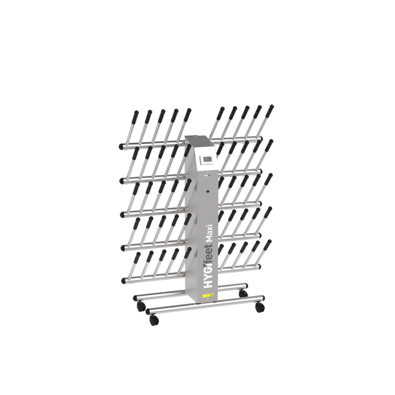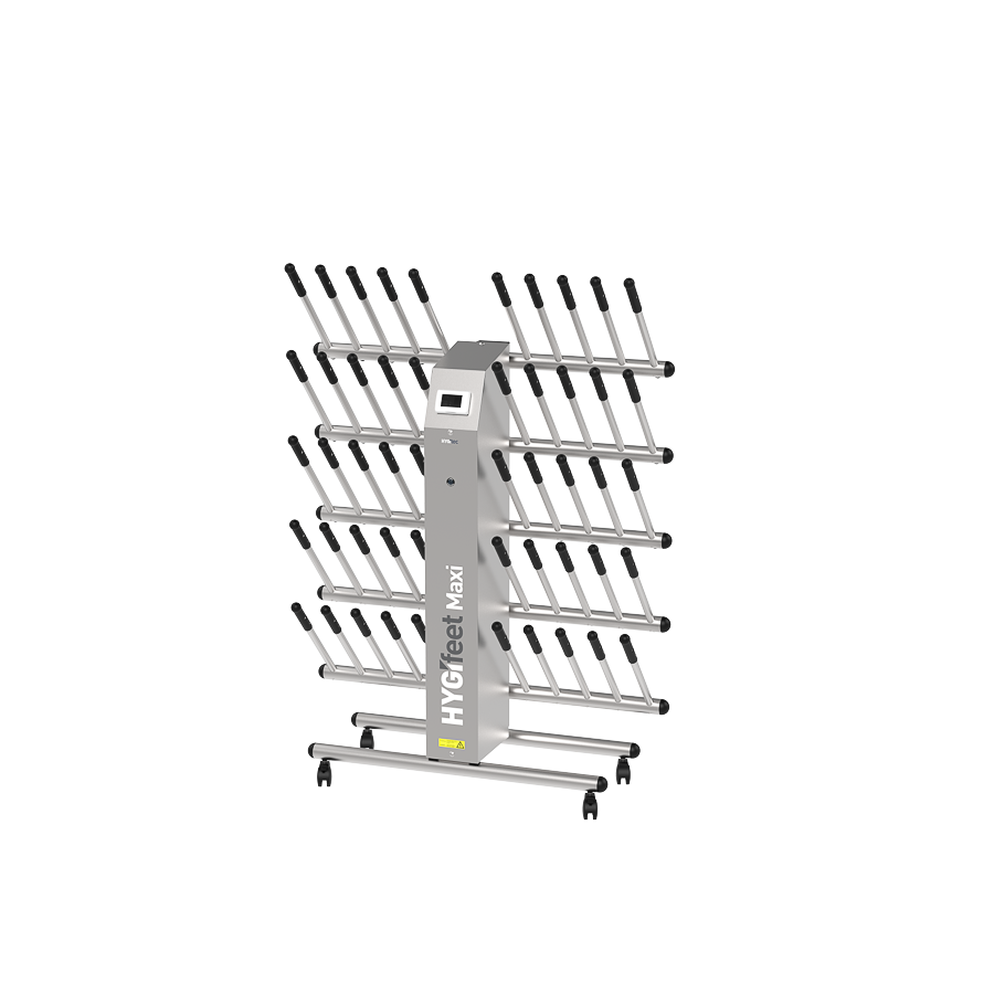 Renowned for its efficiency, HYGIfeet maintains all types of footwear (high boots, low shoes). Compact and mobile, HYGIfeet dries and disinfects the interior of footwear without chemicals, eliminating odours, bacteria, and mould.