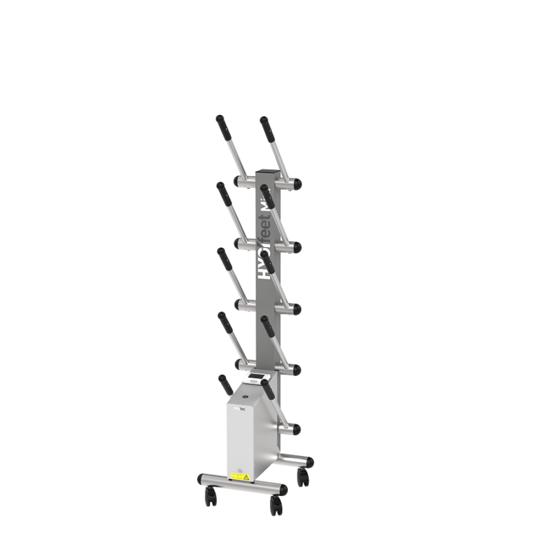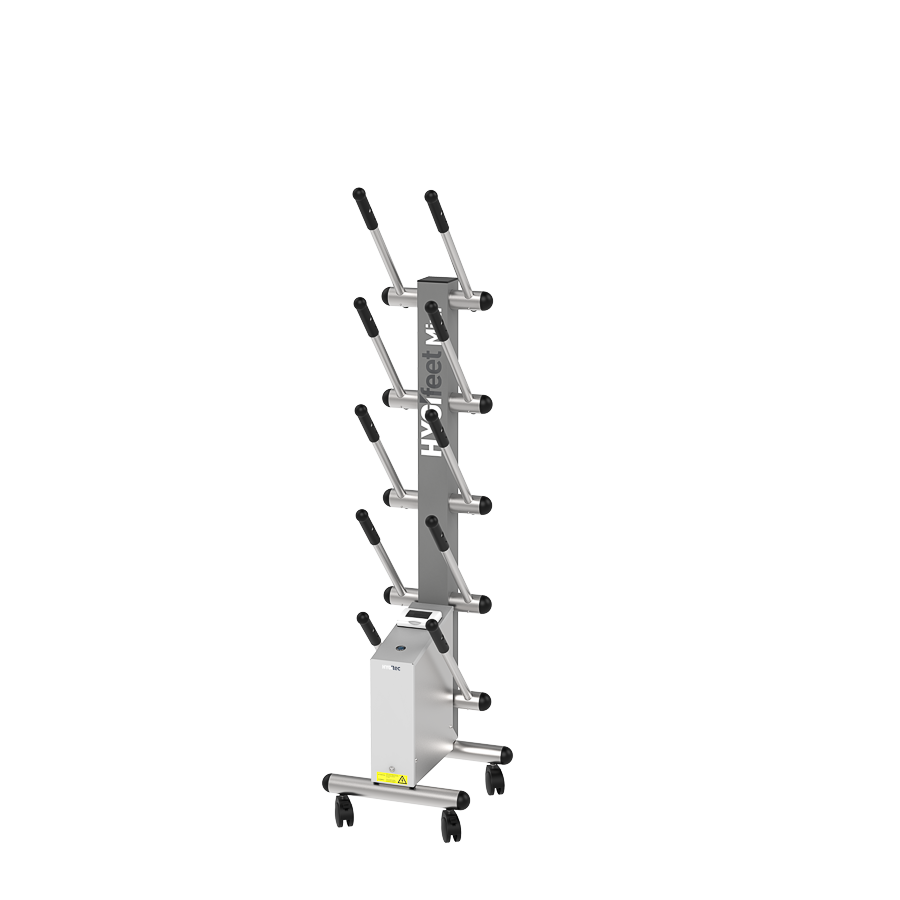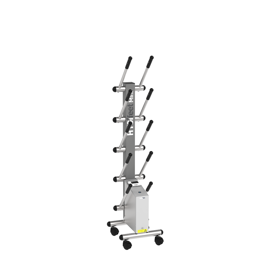 Renowned for its efficiency, HYGIfeet maintains all types of footwear (high boots, low shoes). Compact and mobile, HYGIfeet dries and disinfects the interior of footwear without chemicals, eliminating odours, bacteria, and mould.