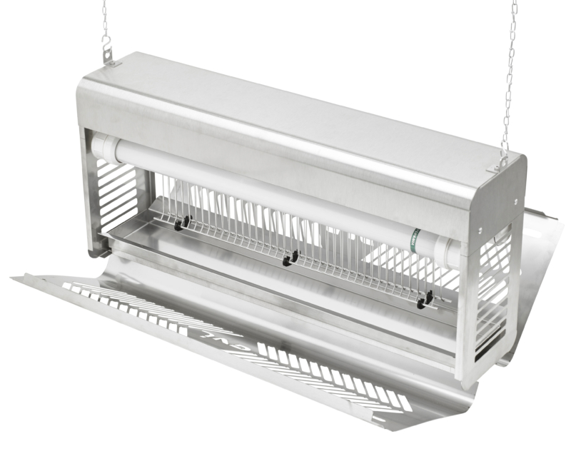 Industrie Pro 80 W TAE IP54 insect killer with 2 40 W splinter tubes made of 304L stainless steel, suitable for very humid environments. Protected surface around 200 m2, to hang, to ask or to fix on the wall.