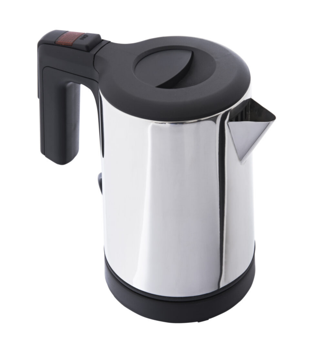 Kettle Duchesse 0.8L shiny stainless steel 1250 W with automatic shutdown at boiling and vacuum. 360° rotation on its base and operation indicator. The length of the cord is 70 cm.