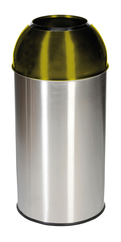 Open yellow DOME COLLECTOR with a capacity of 40L with an outer bowl in brushed stainless steel and a galvanized steel inner tank. The lid is detachable.