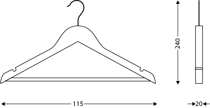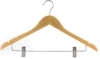 Hanger with clips in natural wood for dressing room with bar and notches.