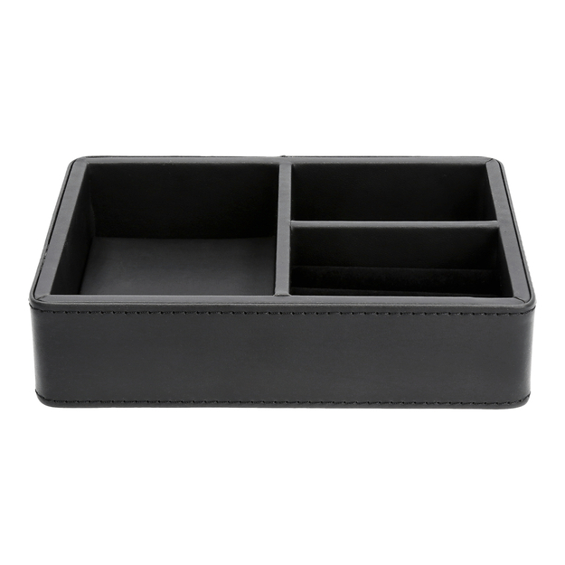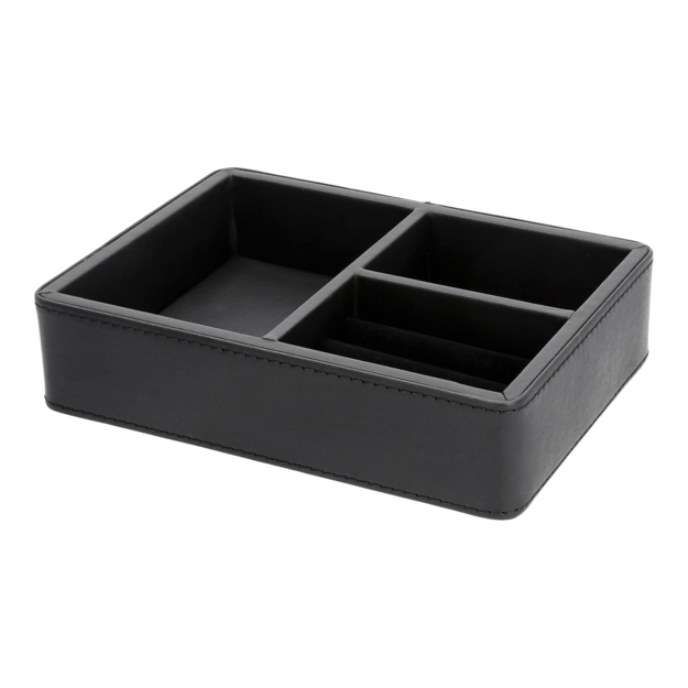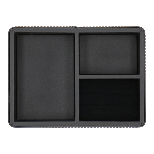 Adesign Charme jewellery tray: Elegant and functional, this black synthetic leather jewellery tray with 3 compartments and velvet interior finish offers refined storage for jewellery in hotels, combining sophistication and protection.