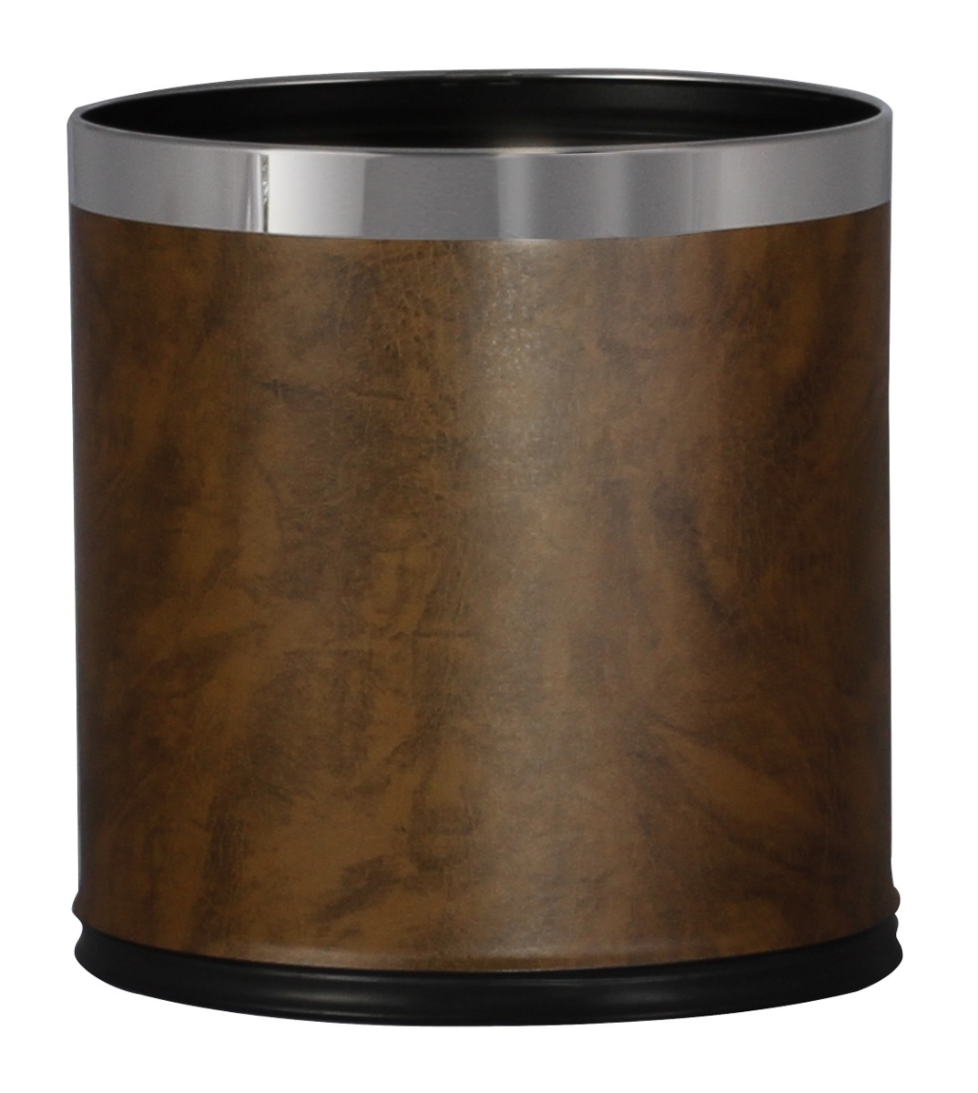 Double layer round metal bin, 10 litres, H270/W225mm, include inner liner, S/S ring, PU leatherette, Brown