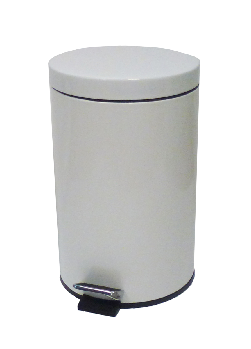 COLLECTOR pedal 12L white metal. Metal exterior and black plastic inner tray. Rubber protection at the base.