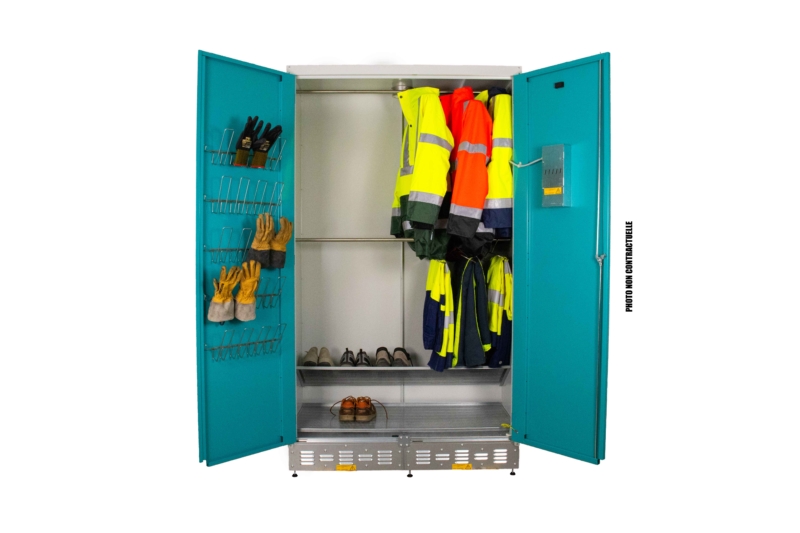 The SANIbox 1200 steel cabinet ensures fast drying and deodorizing of PPE and clothing. Robust and easy to clean, it is ideal for demanding environments: waste management, water treatment, sports, and leisure.