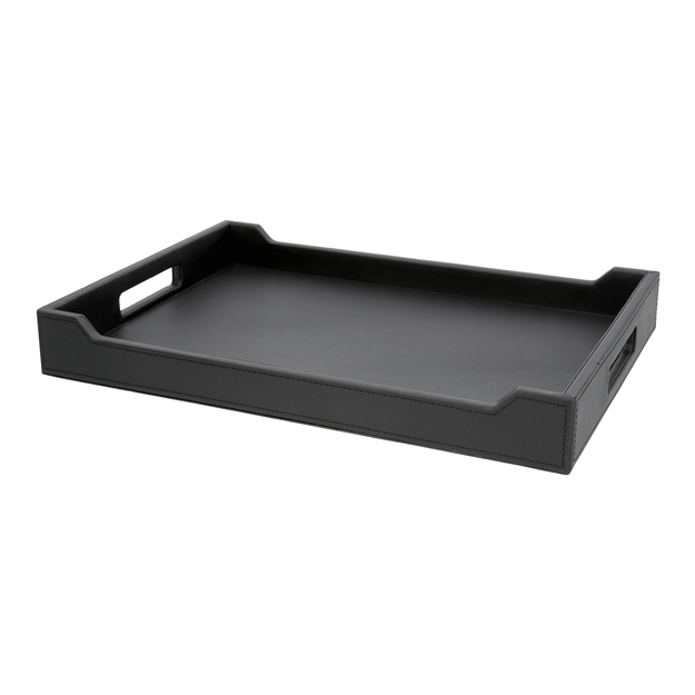 Adesign Charme tray with handle: Practical and refined, this black synthetic leather tray with integrated handles is ideal for room service or elegant storage in hotels. Resistant and elegant, it combines functionality with timeless style.