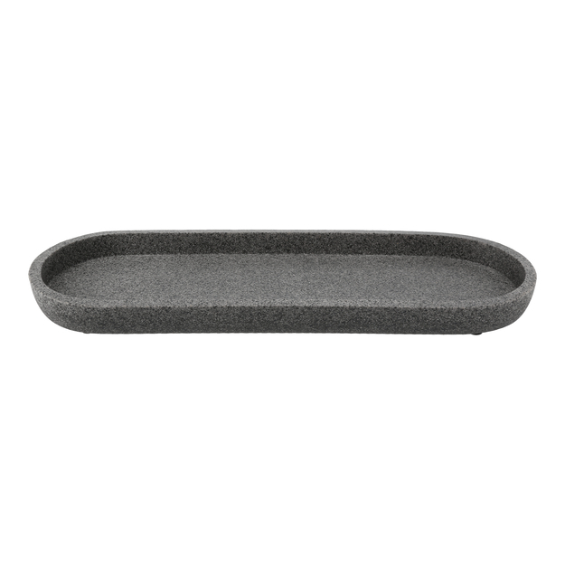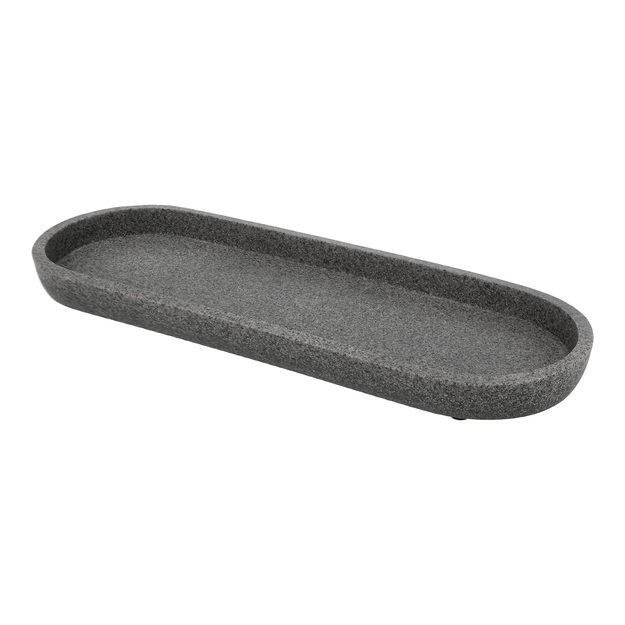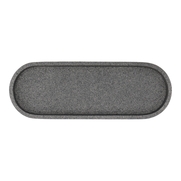 The Adesign Cavern reception tray with rounded edges combines the finesse of polished pebbles with the robustness of modern granite. Its elegant design and rounded edges offer a sophisticated yet functional touch to welcome guests in style.