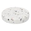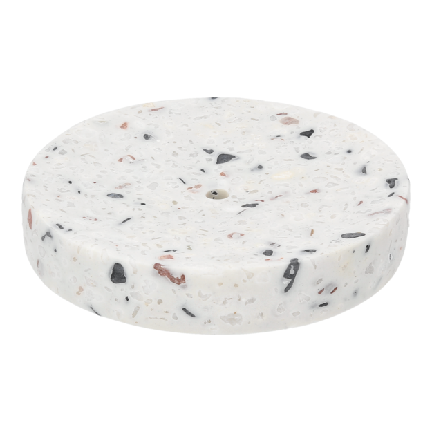 Round Soap Dish Adesign Terrazzo. Modern elegance with a terrazzo finish on melamine. This round soap dish is both chic and practical, adding a touch of sophistication to your bathroom while complementing black and industrial fittings.