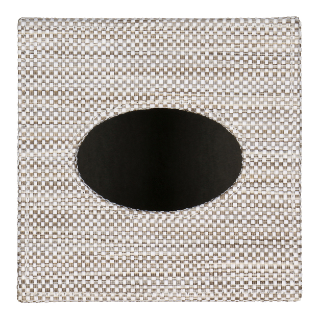 Square tissue box Adesign Tribe: an elegant touch with an olive synthetic leather interior and grey-beige woven polypropylene exterior. Water-resistant, it combines modern design and practicality for your spaces.