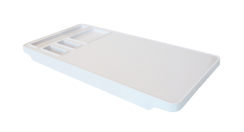 Maestro white tray with notches for integrated bags, burn resistant and anti-stain finish.