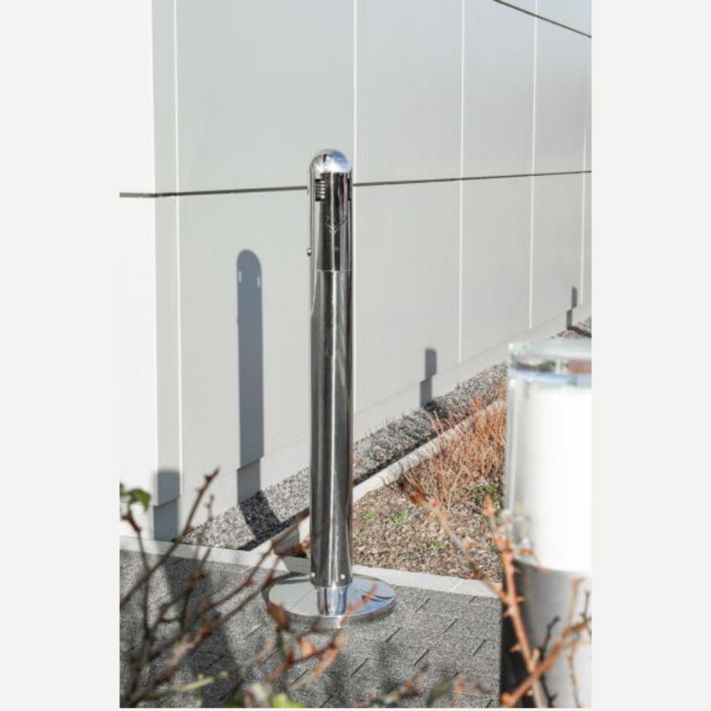 Tubular Ashtray on foot 3L Stainless steel developed to limit the infiltration of rainwater, Easy maintenance : key included, stainless steel snuff plate & key lock
