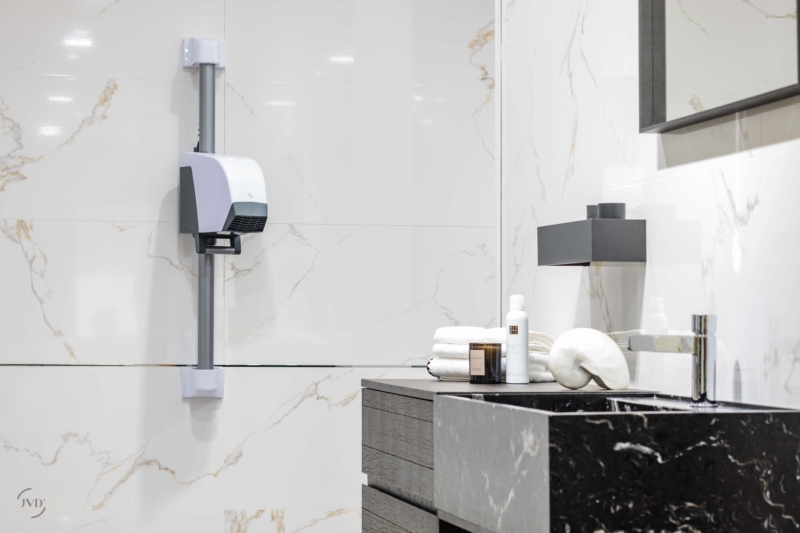 Neptune blue hair dryer for pools and gyms, resistant in chlorinated atmosphere and provided with an induction motor for intensive use. Adjustable and ergonomic height (180° rotation). 3 years warranty.