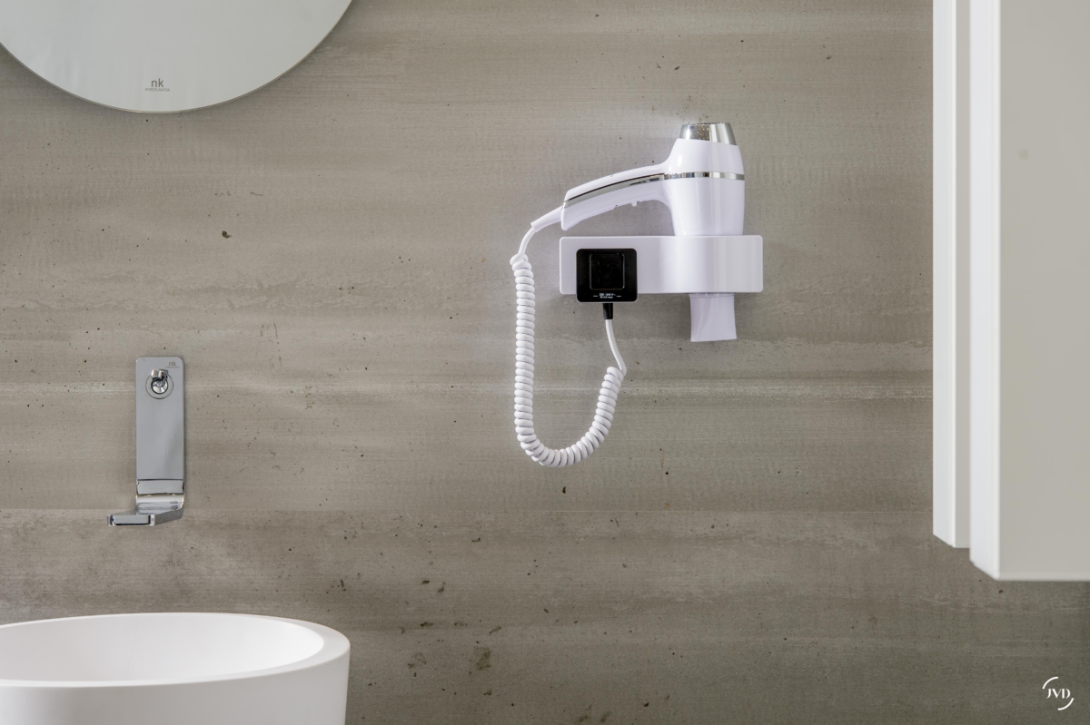 Alteo white hair dryer + holder with shaver MonoTension 230v, 1875 W, activated by simple handling thanks to its patented LighTouch handle. 6 drying configurations and equipped with an ionizing system. Volume Installation 3. Exclusive JVD design.