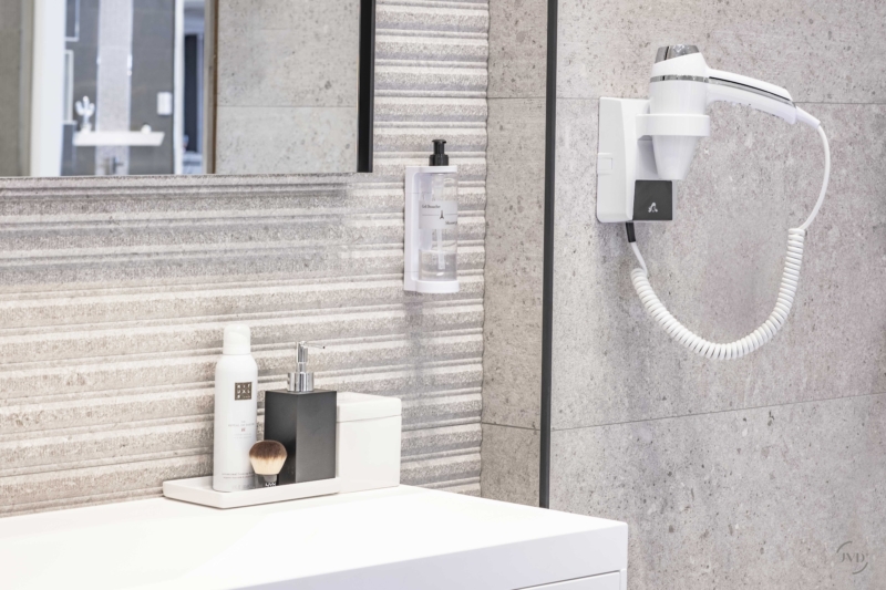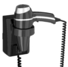 Clipper Black Hair Dryer + Holder with 230V, 1400 W MonoTension Shaver Socket, easy to use with its patented LighTouch handle. 6 drying configurations and equipped with an ionizing system. Concentrator integrated in the form. Installation volume 3.