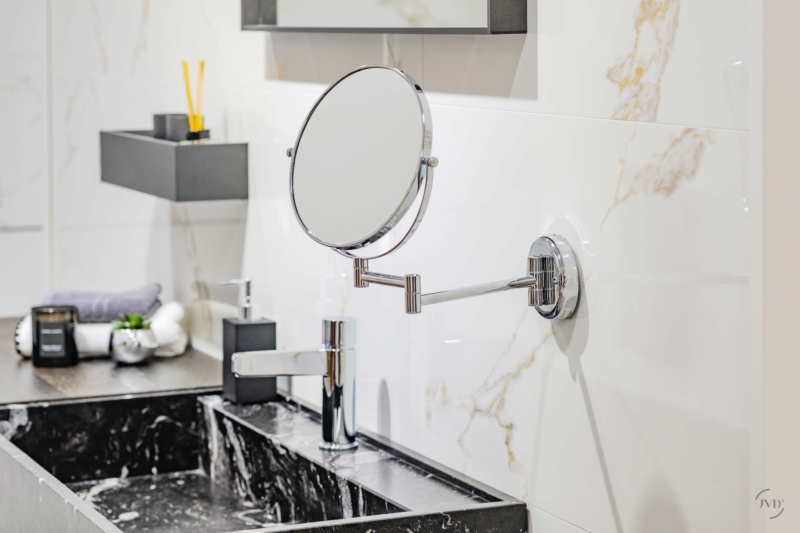 Mirror Fiesta chrome double-sided wall (normal and vision x3) with tubular chromed brass arm.