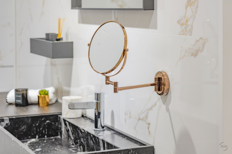 Mirror Fiesta rose gold wall double face (normal and vision x3) with tubular chromed brass arm.