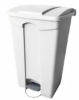Container 90L white with a white lid. Pedal Container with a stability ring and displacement wheels. Automatic closure of the lid and selective sorting stickers included.