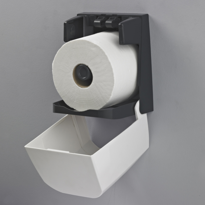 Yaliss DISPENSER MIXED MINI Hygienic Paper with white ABS cover and gray ABS frame. Capacity for 1 roll or 2 packs. Secure lock with key. Made from 50% recycled plastic.